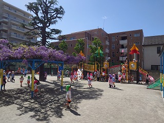 2024 年 4 月 15 日公開 新学期を迎えました 満開の桜が咲き誇る中、始業式と入園式を迎えることが出来ました。新年度となり、久しぶりに園内中に子どもたちの賑やか声が広がりました。そして、あっという間に園庭の彩りが桜色から藤色に代わりました。様々な自然を通して四季の移り変わりを感じて欲しいと思います。