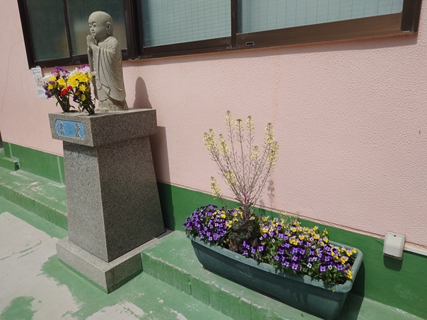 令和8年度、いよいよ始まりました。始業式、入園式を終え、毎日子供たちの賑やかな声が響いています。花壇に植えたチューリップも立派な花を咲かせ、藤の花も満開となり、いい匂いにつられて大きな体のクマバチも飛んできています。正門近くの「のの様」の横にはきれいなすみれの花も風に揺れていて、春の花々が園庭を彩っています。