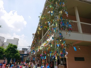 2019 年 6 月 25 日公開 七夕 6月も終わりに近づきました。7月の七夕に向け、子どもたちが短冊や手作りの笹飾りを笹の葉に飾りました。願い事はそれぞれ個性豊かなかわいらしいものばかり。園庭には3本の大きな笹が色とりどりの子どもたちの願いを身にまとい、園庭を彩っています。子どもたちの願いが空に届くといいですね!